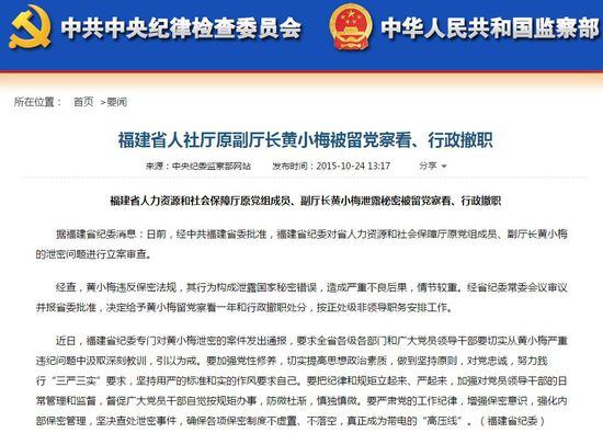 中国青年网北京10月24日电(见习记者 康乐)据中央纪委监察部网站10月24日13点17分消息,福建省人力资源和社会保障厅原党组成员、副厅长黄小梅泄露秘密被留党察看、行政撤职,该通报显示,黄小梅违反保密法规,其行为构成泄露国家秘密错误,造成严重不良后果,情节较重。经省纪委常委会议审议并报省委批准,决定给予黄小梅留党察看一年和行政撤职处分,按正处级非领导职务安排工作。 科兰美轩文件加密软件专家表示:若行政事业单位安装了文件加密软件,可针对国家机密文件进行实时、透明、强制的加密保护,一旦未经授权,任何人得到加密后的文件,都是无法正常使用和利用的,打开都是乱码。加密软件若能配合上网行为管理软件一起使用,就能防止员工有意无意的造成各种泄密风险。上网行为管理软件可以实时了解单位员工的上网动态,文件传输及通过移动设备就服务器或电脑上的文件进行复制粘贴等行为,能很好的保护文件的信息安全。 |