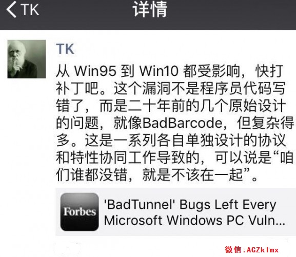 据悉,这两个漏洞是由国人TK发现的,他为漏洞起名为“Bad Tunnel”。TK表示,借助这两个漏洞,攻击的成功率将变得非常高。