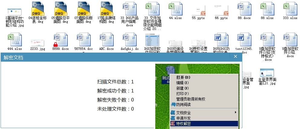 经常有很多客户在向我们的售前咨询顾问咨询文件加密软件的事,特别有一些问题会经常遇到,比如说文件加密软件能解密文件,那能解密文件夹吗?如果文件夹里面有多种类型的文件,如果选择了文件夹解密的话,是不是这个文件夹里面的所有的文件都会被解密呢?如果要对一个文件进行解密,可以通过手动选择该文件后再点击鼠标右键来实现解密文件的目的,那么能否一次选择多个文件并进行批量解密呢? 显然这些需求都是可以完全满足的。下面就逐一来回答各位的这些疑问了。 首先,文件加密软件可以实现全自动实时透明的按照公司确定的加密策略来加密已安装文件加密软件客户端电脑上的各种目标文件,这个是文件加密软件的基本功能,同时它也是可以按照公司确定的解密策略来解密已安装文件加密软件客户端电脑上的各种目标文件,这个同样是文件加密软件的基本功能。
