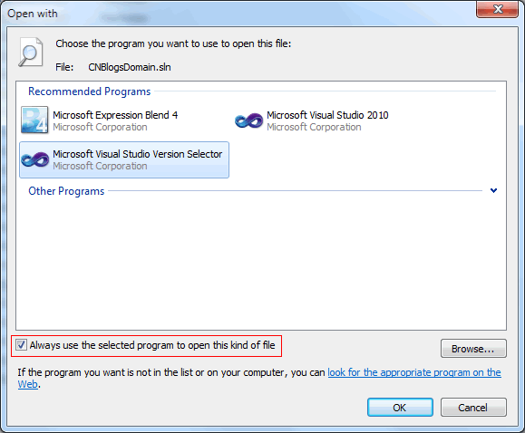 有的客户认为是源代码加密软件的问题,加密软件功能不行,加密软件不好等各种反馈,其实当您从百度上把同样的问题录入到搜索引擎上去搜索时,会发现其实现实中,没有安装加密软件的普通用户,也存在这样的问题反馈,可见并不完全是源代码加密软件才会引起的这个现象。 如上图所反馈,我们作一个设置上的修改和调整后,就能很轻松的实现如未安装加密软件时的状态,即不同版本的Visual Studio工程会被同版本的Visual Studio打开了。