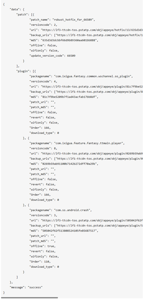 基本上木马梦寐以求的各种权限,作为一个新闻客户端的今日头条都要了。 它的许多功能都是通过热补丁按需下载安装的,不要误会,不是按照你的需要,而是按照今日头条的需要。 比如它一个典型的热补丁列表,这个“robust_hotfix_for_66509”就是一段未加验证就加载的可执行代码。