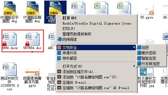 再次,就是通过企业的内部局域网或VPN或公网映射(或类似于花生壳等第三方远程应用工具软件)等方法让部门员工的电脑连接到企业的主服务器上,接受加密策略并执行该数据文档安全策略,从而完成了对WPS文档加密策略的部署工作。 最后,当员工在打开或新建、编辑、删除或复制/粘贴加密WPS文档中的文字时,就会被强制实时透明的加密相关的WPS文档里的内容了。 被加密的WPS文档也可以在文件图标的左下角显示被加密图标,比如一把红色的小锁,也可以设置不显示加密图标,这样就可以灵活的设置是否正确区分加密的WPS文档和不加密的WPS文档了。